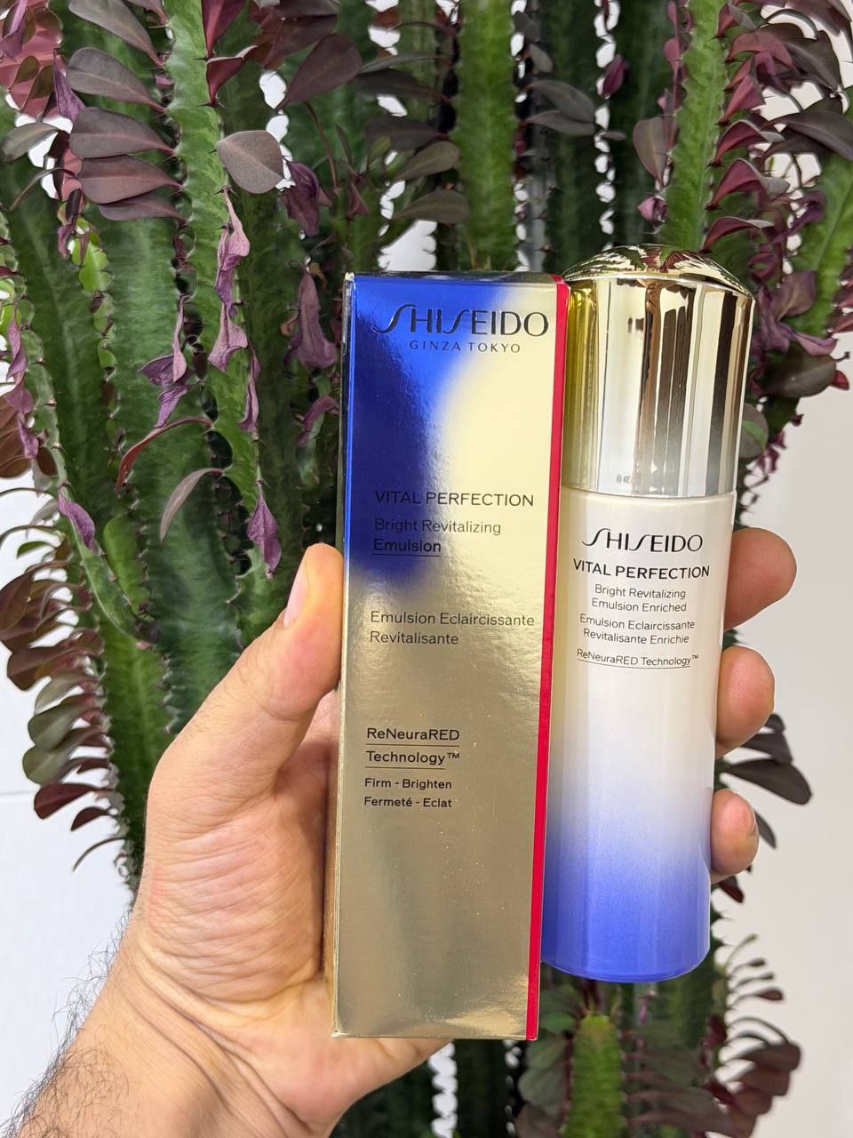در ادامه، امولسیون احیاکننده روشن VITAL PERFECTION غنیشده (۱۰۰ میلیلیتر) با بافتی لطیف اما غنی، رطوبت مورد نیاز پوست را بهصورت عمقی تأمین کرده و اثرات ضدپیری را تثبیت میکند. این امولسیون نیز با فناوری ReNeuraRED™ به بهبود استحکام، افزایش درخشندگی و یکدست شدن رنگ پوست کمک میکند. ترکیب این دو محصول، پوستی جوانتر، روشنتر و مقاومتر در برابر علائم پیری را به ارمغان میآورد.